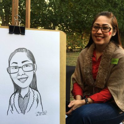GOING LIVE – Your Guests will See and Interact with a Real Live Caricaturist while being Drawn. This is a very Unique Experience as they’ll be able to see their Caricatures unfold while they sit and pose for the artist in the comfort of their own home or office. This will require good bandwidth, familiarizing everyone with the conferencing platform of your choice, and scheduling of each guest into specific time slots. Guests will be able to download their caricatures, and see everyone else’s drawings afterwards from a branded event specific, agent friendly web-page.